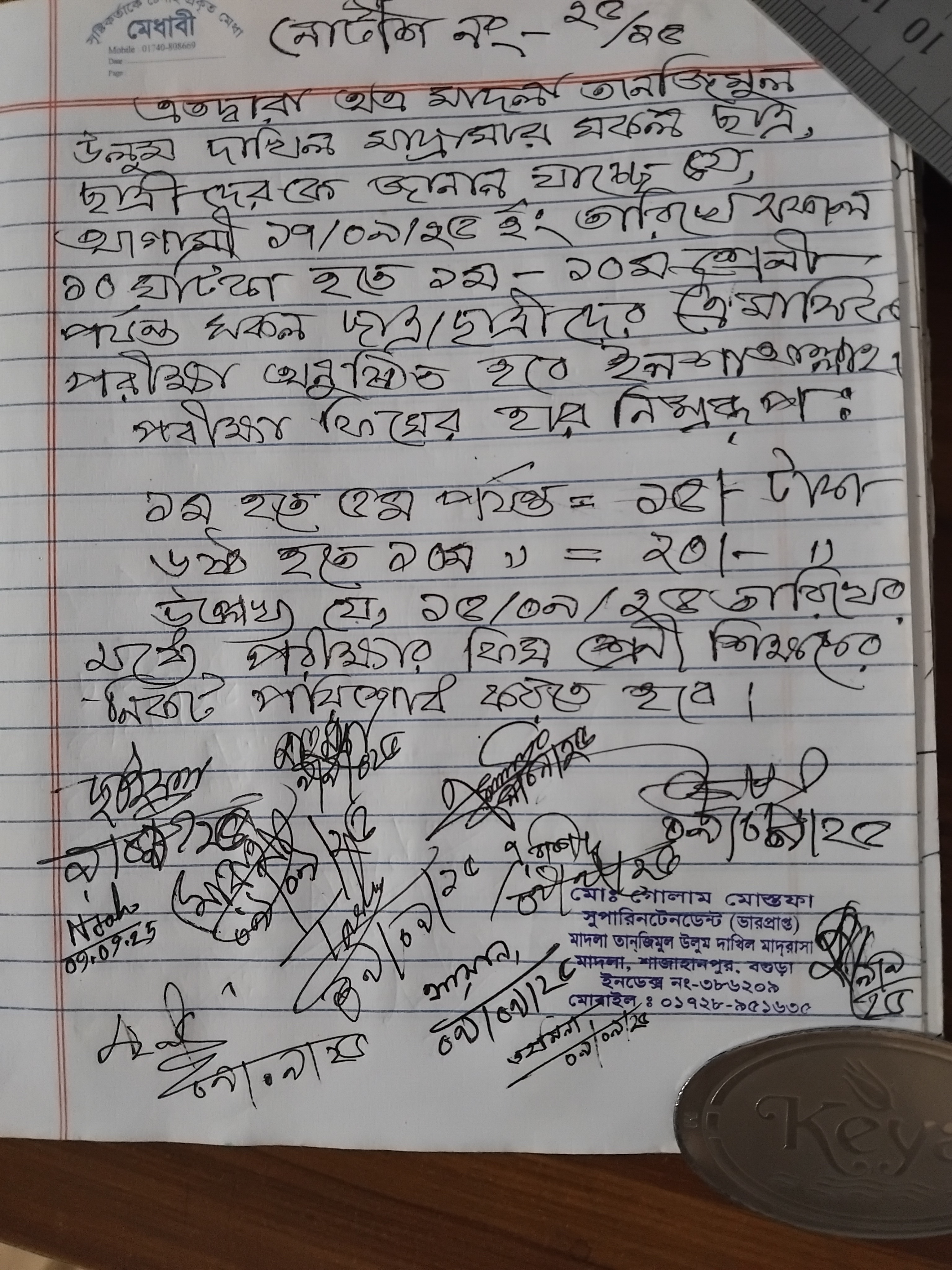 সকল ছাত্র-ছাত্রীদের মাদরাসায় নিয়মিত উপস্থিত থাকার জন্য বলা হলো।